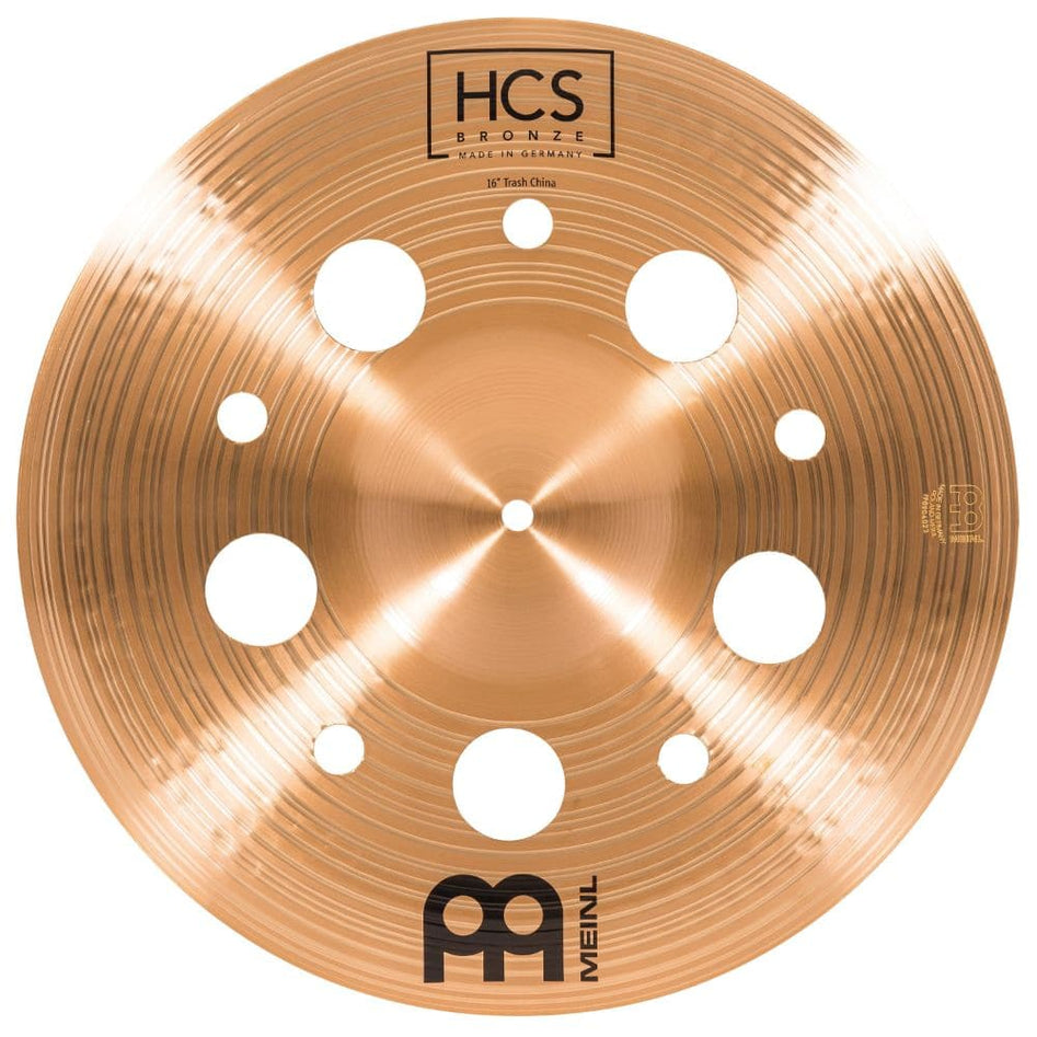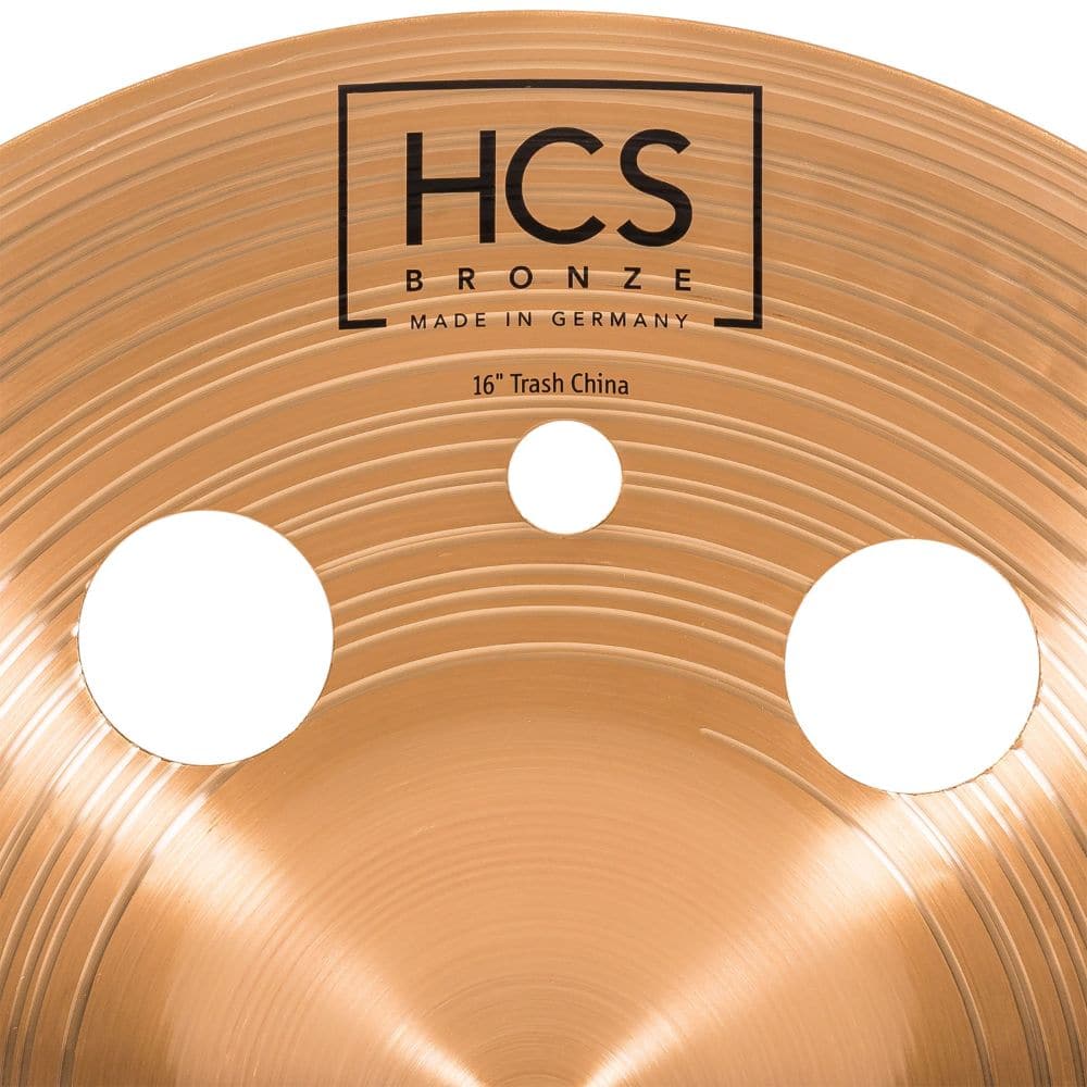 | Trashy sound effects - the HCS bronze 16 trash china features hole cut-outs that give the cymbal a trashy effect with a shorter sustain - for energetic bursts of sound, heavy crashing and stacking by placing directly on top of or underneath any cymbal | |