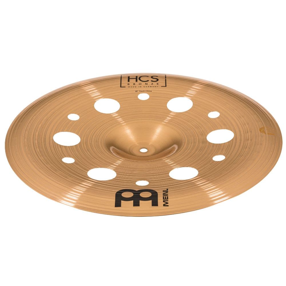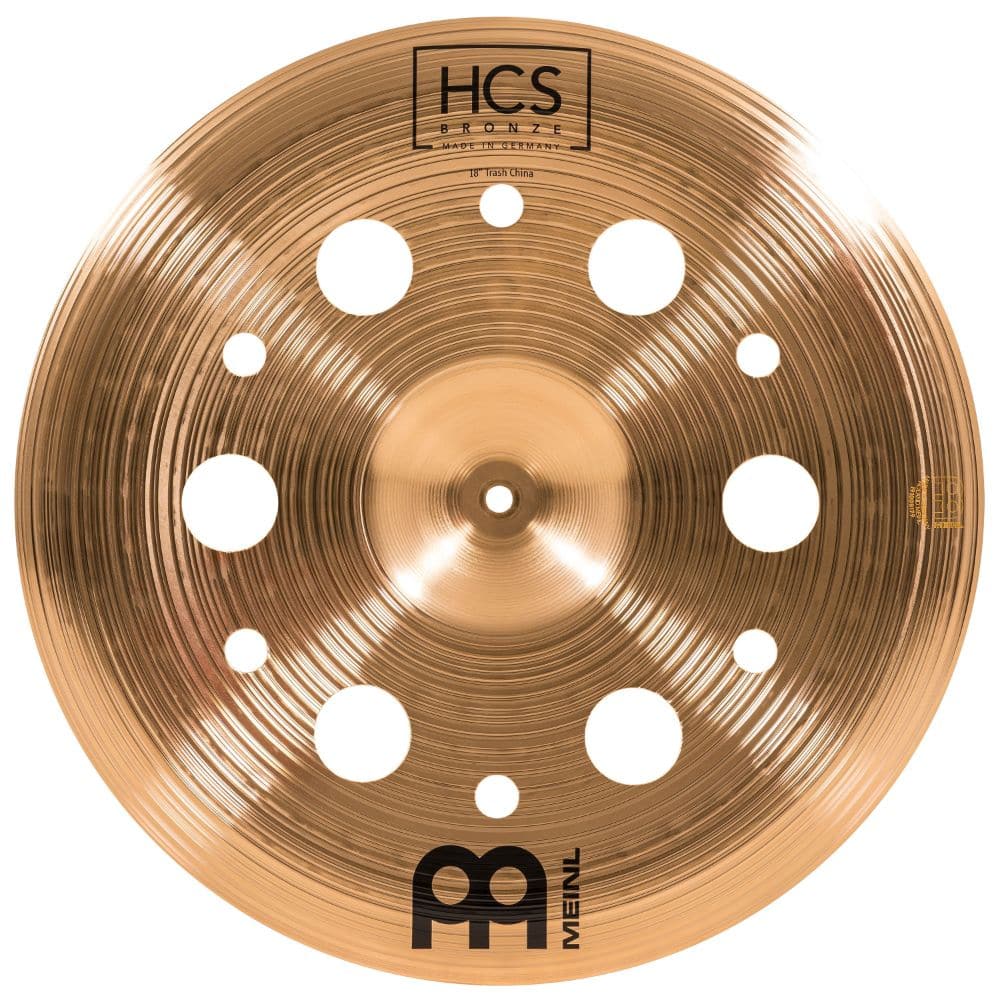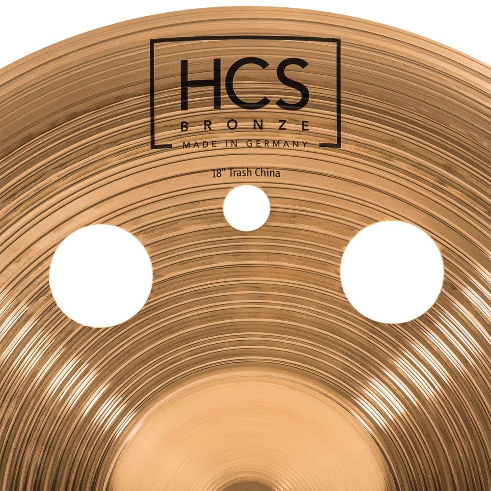 | Trashy sound effects - the HCS bronze 18 trash china features hole cut-outs that give the cymbal a trashy effect with a shorter sustain - for energetic bursts of sound, heavy crashing and stacking by placing directly on top of or underneath any cymbal | |