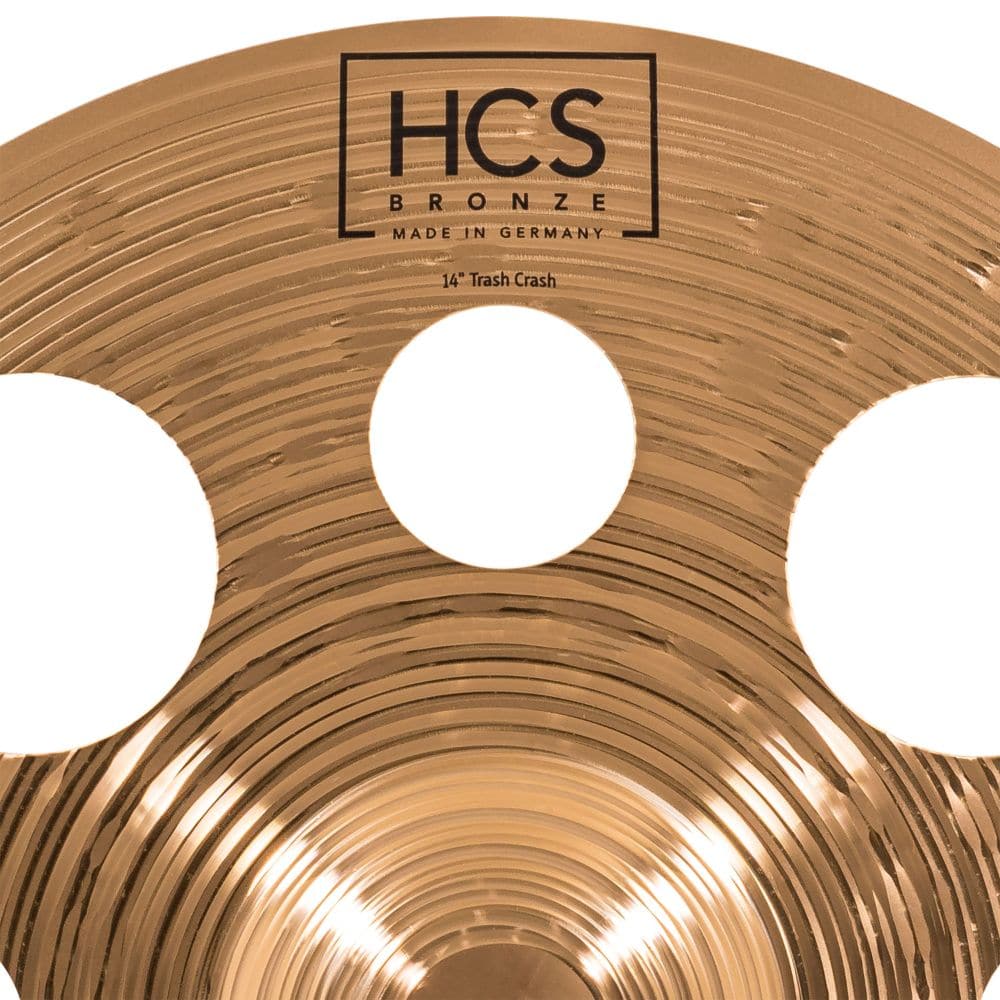 | Trashy sound effects - the HCS bronze 14 trash crash features hole cut-outs that give the cymbal a trashy effect with a shorter sustain - great for energetic bursts of sound and stacking by placing directly on top of or underneath any cymbal | |