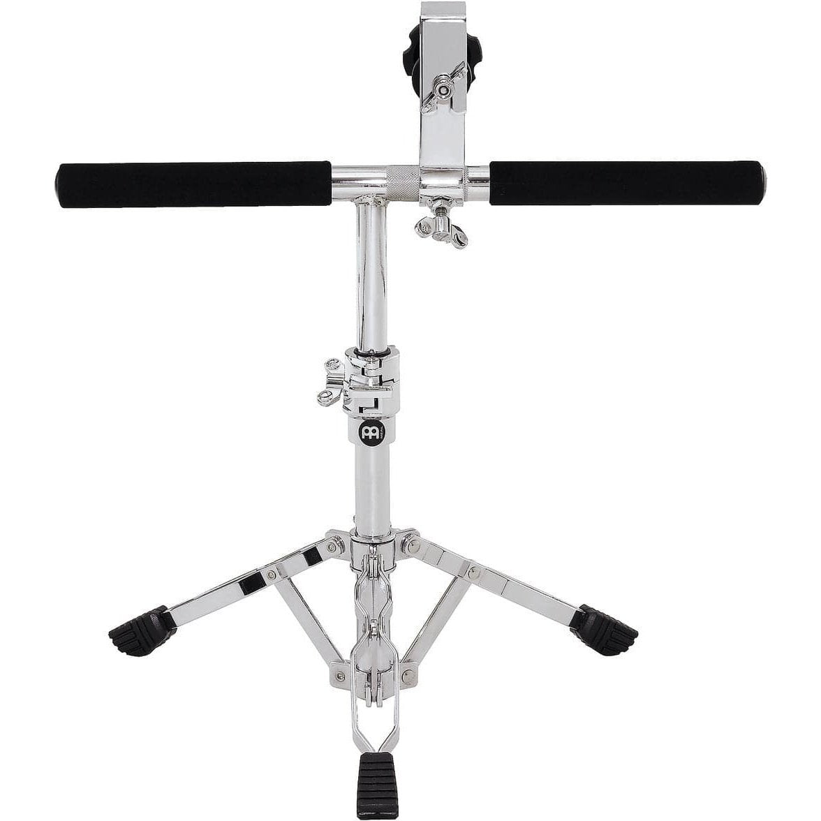 Bongo Stand, Chrome plated steel, seated playing position possible, Padded T-Shaped tube, fully height and angle adjustable, double braced tripod legs, fits all common bongos.