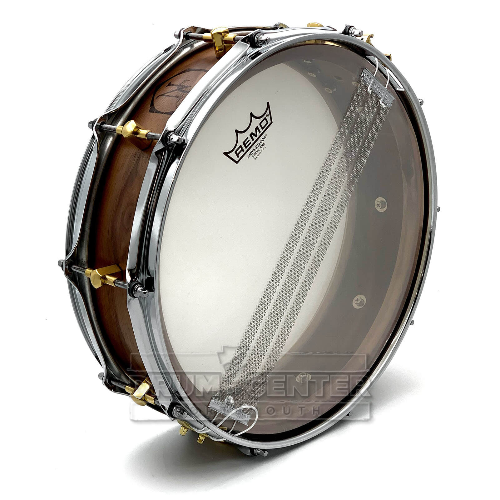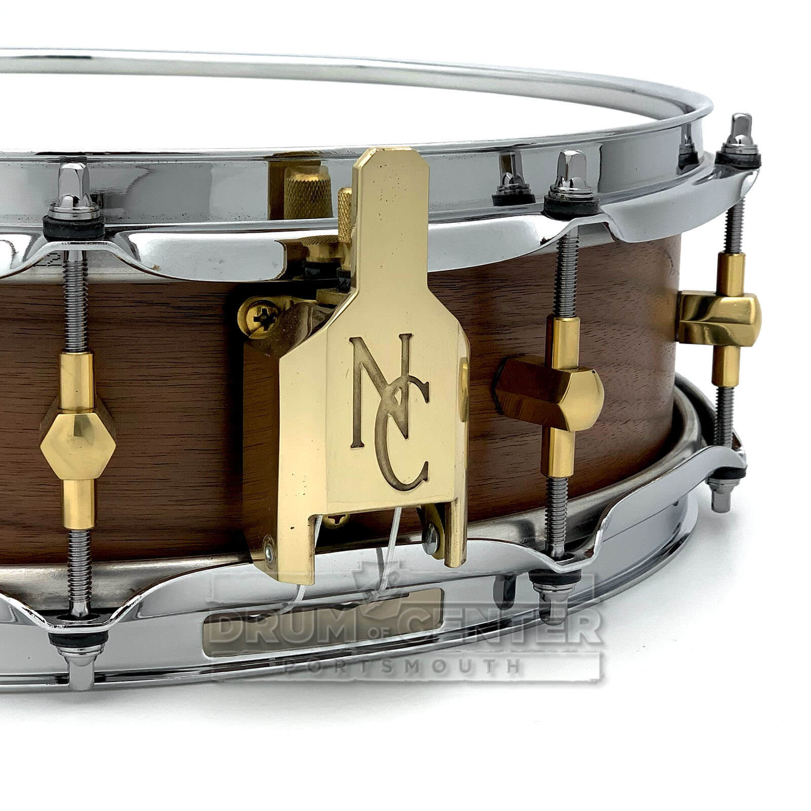 This drum sports chrome triple flanged hoops, 10 solid brass lugs, a solid brass strainer and butt, proprietary Cam Action wires, a classy wood burned logo, Remo USA heads, and a natural oil finish over a spectacular solid ply walnut shell, steam bent using the same machinery Noble & Cooley has used since the Civil War!