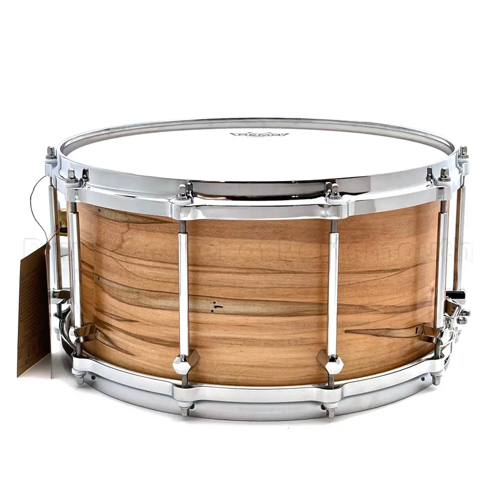 Despite the presence of 'vent holes' from the Ambrosia beetle, the wood maintains its strength and produces a consistent sound, similar to that of the Solid Shell Classic maple snare.