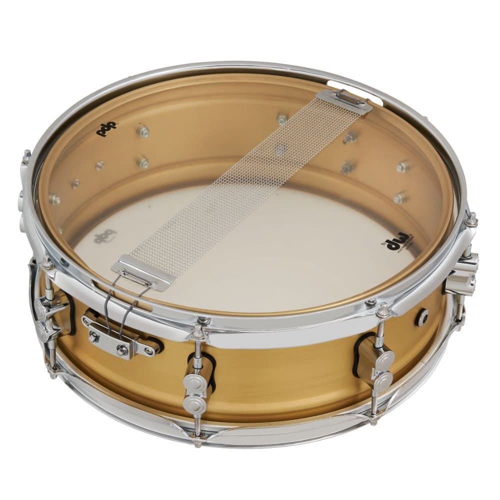 This Concept Series Brass snare drum offers a rolled and double-beaded 1mm brass shell with a brushed exterior for a bold, vintage-style satin appearance. Brass shells produce a heavy, fat attack, musical overtones, and a wide tuning range that’s suitable for a variety of styles. The hardware offers stylish dual-turret lugs and high-end DW appointments like a MAG Throw-off, True-Pitch Tuning rods, and Remo heads.