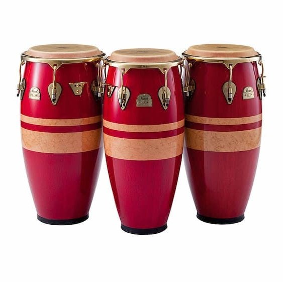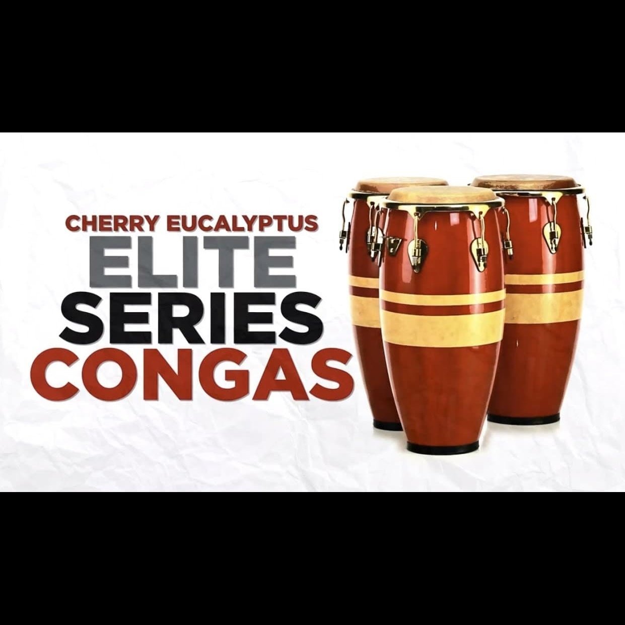 Pearl 11.75" Elite Thai Oak Conga with premium buffalo skin heads and Contour Crown rims finished in #532 Cherry Eucalyptus with gold plated hardware.