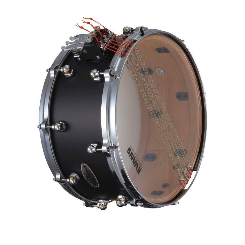 Featuring a 4-ply Maple w/4-ply Re-Ring shell and a Matte Black lacquer finish, this drum boasts a solid and articulate sound. Its SR300 Philharmonic Strainer includes three individually tunable 6-strand snappy wire snares that can be engaged or disengaged to customize the sound.