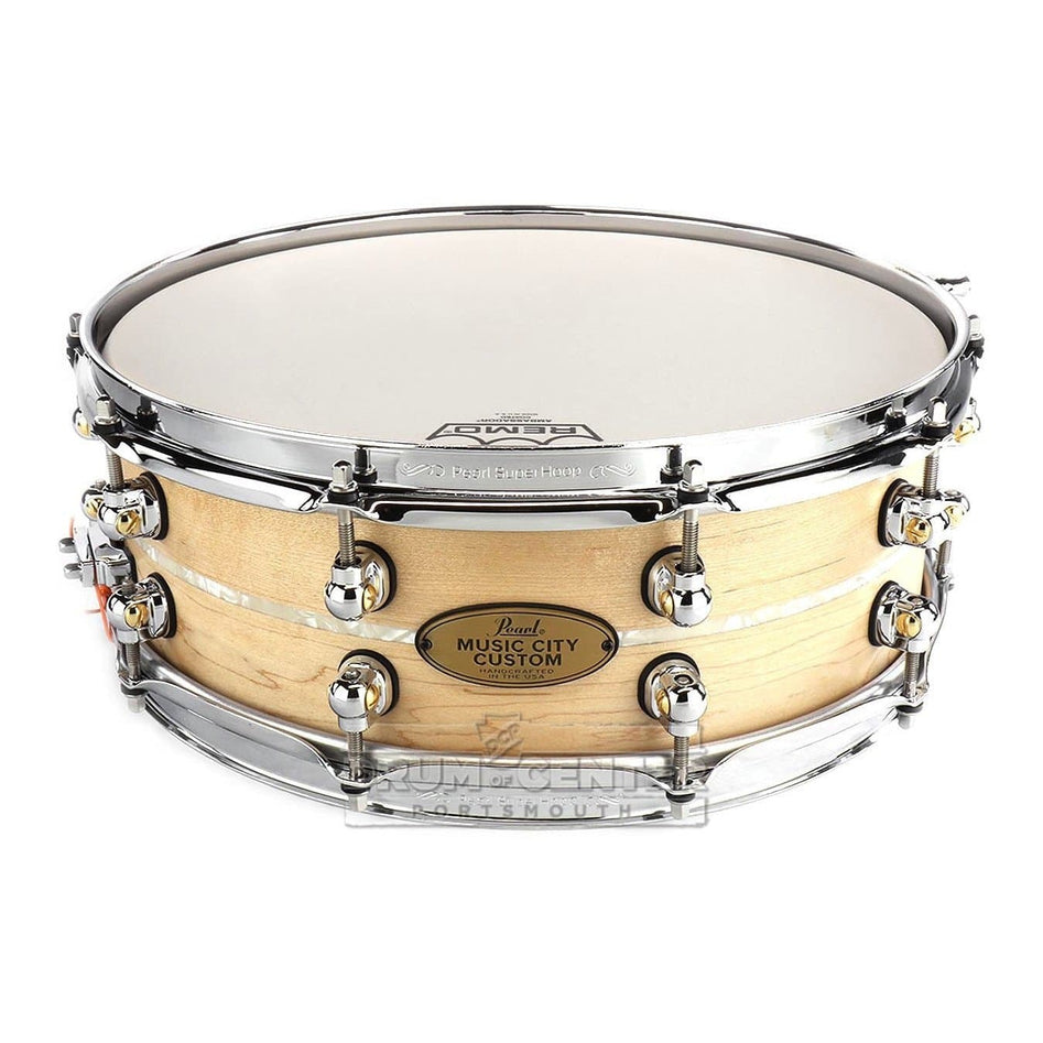 Pearl Music City Custom Solid Maple 14x5 Snare Drum Natural w/Marine Pearl Inlay