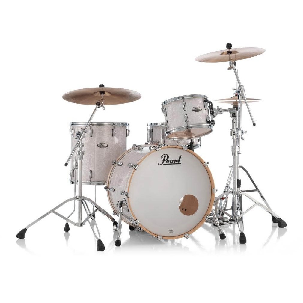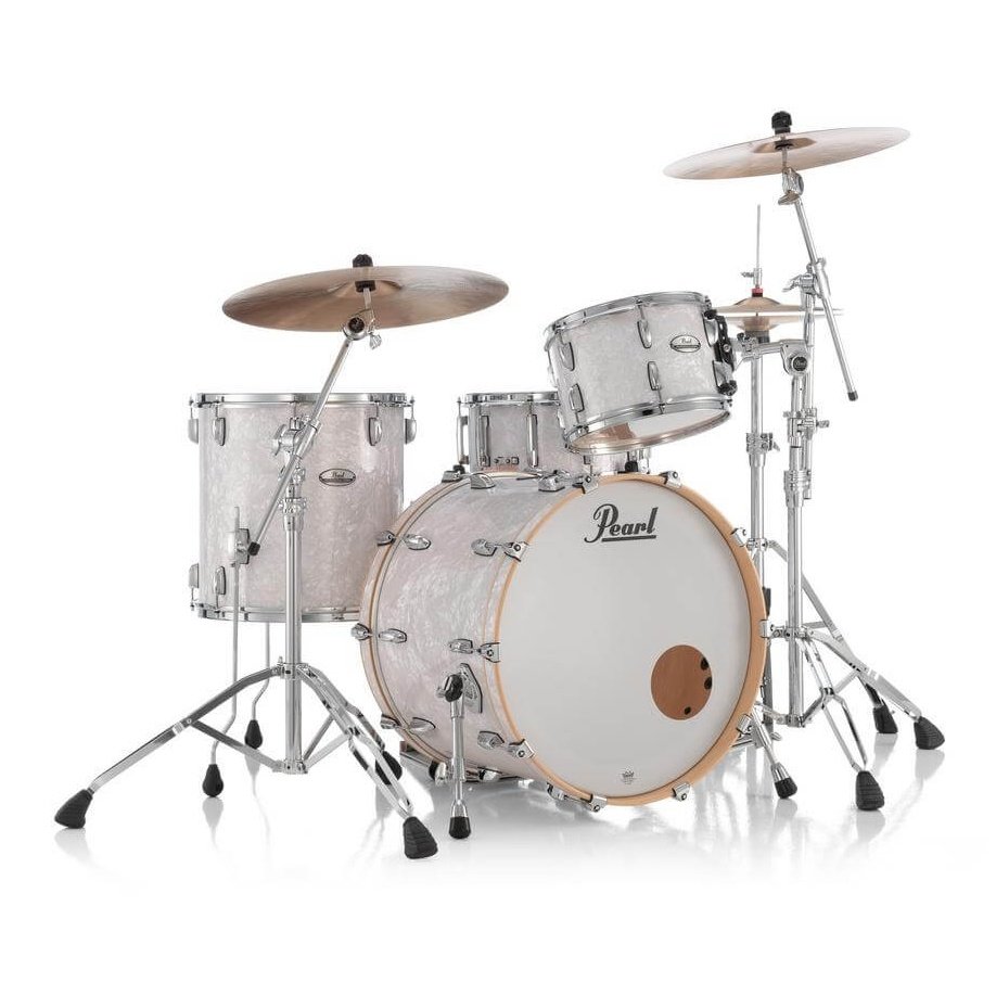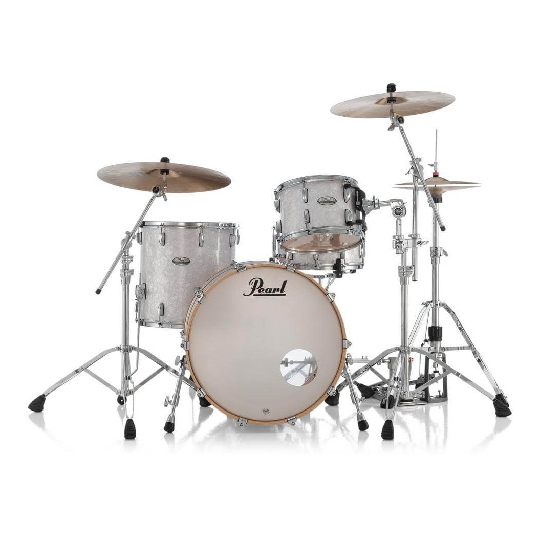 From local gigs to national tours, Pearl's updated Professional Series drums have a look and sound that fits in any live performance space. Beginning in 1985, Pearl introduced its legendary MLX drums under the Professional Series banner to bring the powerful Maple sound to the forefront. Today, Professional Series returns with the spirit of the original and a refreshed presence for the experienced drummer. Its EvenPly Six 5.3mm North American Maple shell is made for lively sonic warmth from the cockpit, and broadcasts with a broad frequency spectrum in performance. This 3-pc. shell pack includes a 22x16 bass drum (no mount), 16x16 floor tom, and 12x8 tom. Features include Pearl's classic RL Lug, tour-ready adjustable spurs, OptiMount tom suspension system, and Remo UT drum heads. Its classic White Marine Pearl finish assures a timless look any setting.