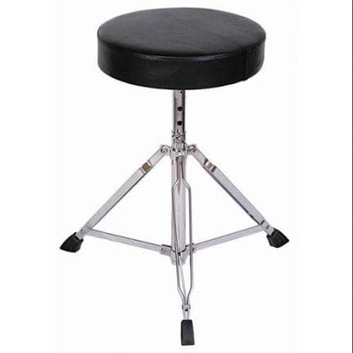 A round drum throne with a tripod base gives you a sturdy foundation to keep you from tipping over when you are in the groove. This comfortable 1000T padded seat gives you the support and comfort you need for those long and tiring gigs! It works for keyboard players and guitar players too. The double braced design makes it long lasting and rugged, and the screw type height adjustment lets you set the right height.