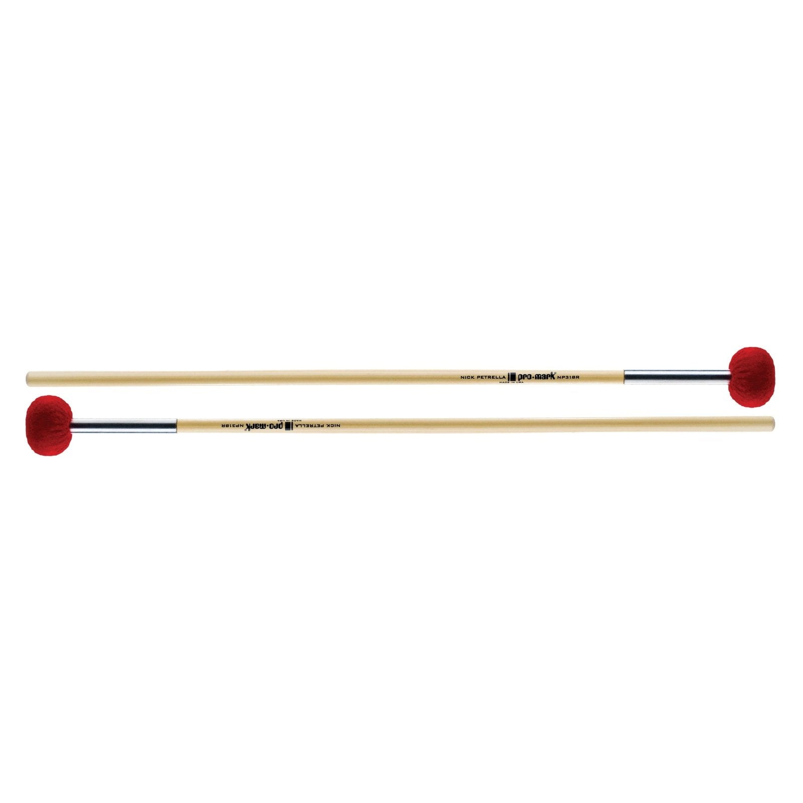 ProMark NP318R Nick Petrella multi-percussion mallets were designed by accomplished performer, teacher, and clinician, Nick Petrella. These multi-percussion mallets are among the most versatile tools on the market. Featuring a light-weight hickory handle with a metal collar that works well with triangles and crotales, the NP318R also has a soft head for use on keyboard percussion, cymbals and timpani.