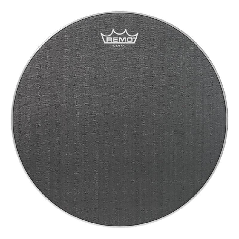 The Suede Max Marching Snare drumhead provides a softer a feel and warmer tone featuring a black matte suede finish for a warm attack.