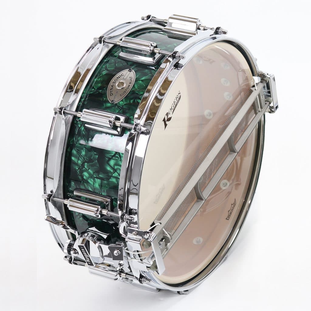 Rogers Dyna-Sonic Wood Shell Snare Drum - Green Marine Pearl - 14x5 Skip to content