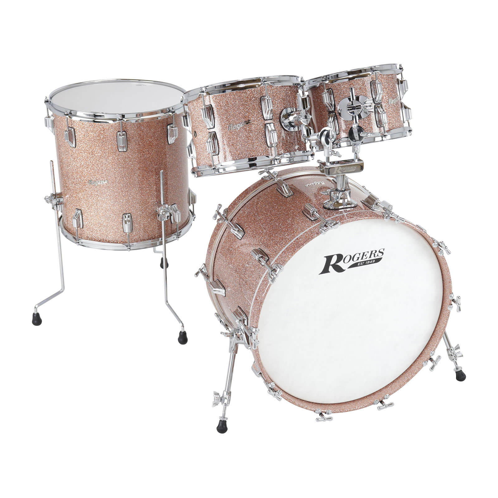 Like an aged fine wine, few drum kits evoke "class" like a Rogers in Champagne Sparkle. Considered the finest in the industry during the brand's golden era, Rogers' new lacquer sparkle finish bubbles even higher. Touching down in two classic kit configurations, enthusiasts can choose the new Champagne Sparkle in either the 14”x 22”, 7”x10”, 8”x12”, 16”x16” setup or the 14”x 20”, 7”x10”, 8”x12”, 14”x14” profiles.