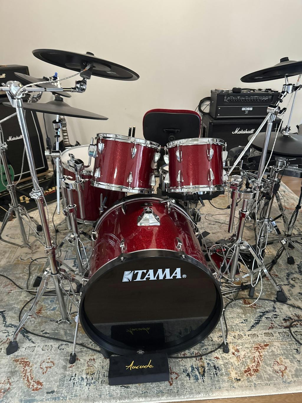 - L-rod tom mount with ball clamp for easy pad positioning