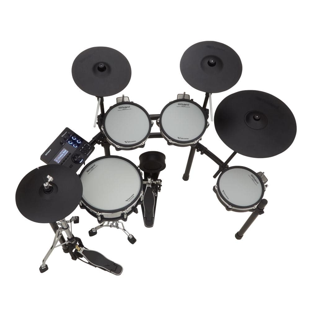 Advanced PD-140DS snare and CY-18DR ride pads offer sophisticated multi-sensing that works with the TD-27’s digital trigger inputs and fast, high-resolution processing to provide the most lifelike, resonant, and expressive sounds possible, plus support for natural techniques with cross-stick detection, ride cymbal muting, and more. The kit also includes three PDX-100 tom pads with Roland’s famous multi-layer mesh heads, CY-12C and CY-13R cymbal pads, a VH-10 V-Hi-Hat, and a KD-10 kick pad.
