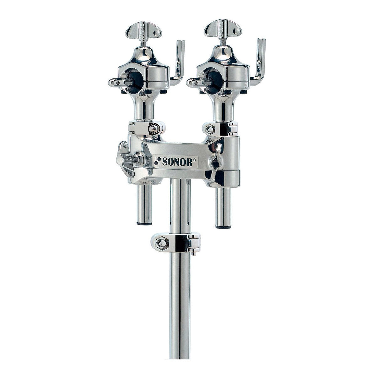 The Sonor DTH-675-MC 600 is a double tom holder from the 600/6000 series, featuring two omni-ball tom arms for versatile positioning. This chrome-plated arm features a 1" diameter downpost which fits into the mounting bracket on many Sonor bass drums (sold separately). Memory locks are also included.