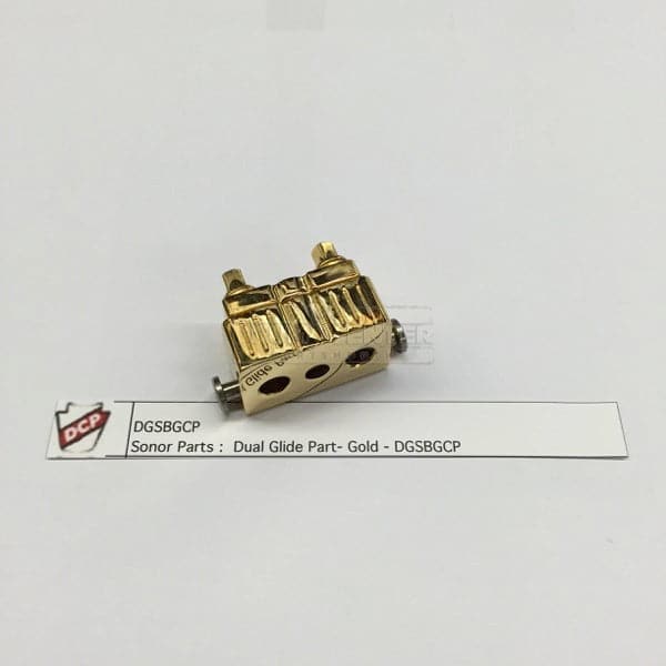 Whether you're in need of a last minute repair before your gig, or you just want to be prepared and carry an extra with you, The Drum Center of Portsmouth is your source for genuine Sonor factory replacement parts. This is the 19045605 Butt Clamping Plate in Gold finish for Sonor Dual Glide Strainers, which are found on the Prolite Series, SQ