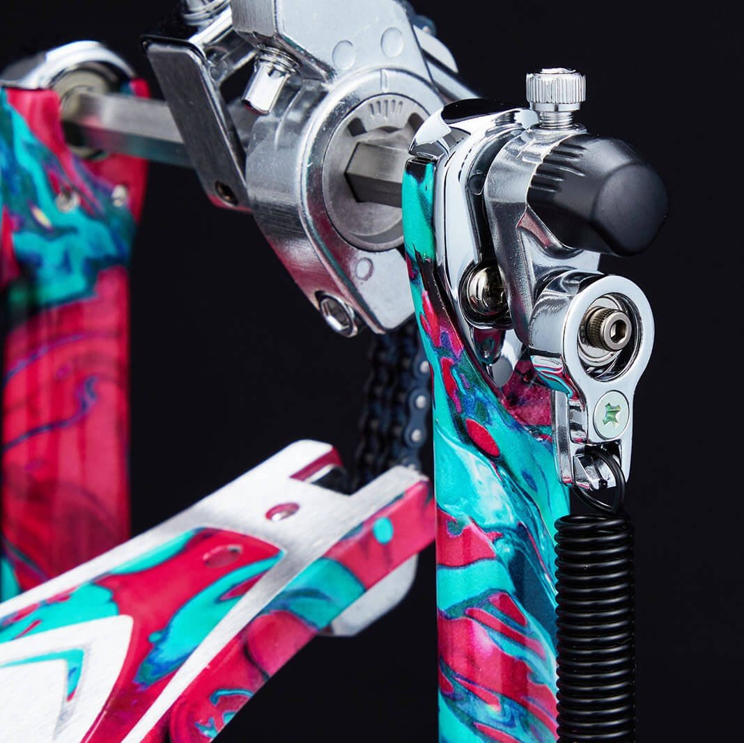 Since its release in 1993, the TAMA Iron Cobra Bass Drum Pedal has been the among world's most highly rated pedal. At the core of the Iron Cobra series sits originality and innovation in design and engineering. Iron Cobra pedals are trusted by the best of artists to help them express their drumming wizardry efficiently and consistently, time and time again. As music evolves so does Iron Cobra. With numerous limited edition models released over the last two decades, TAMA celebrates their 50th Anniversary with this limited edition Power Glide Double Pedal in stunning Marble Coral Swirl finish. The finish for each pedal is truly unique; no two pedals are the same, giving this pedal a unique visual distinction as personal as each drummer’s artistic expression. This Limited Edition model serves as a special celebration for Iron Cobra's long and storied legacy.
