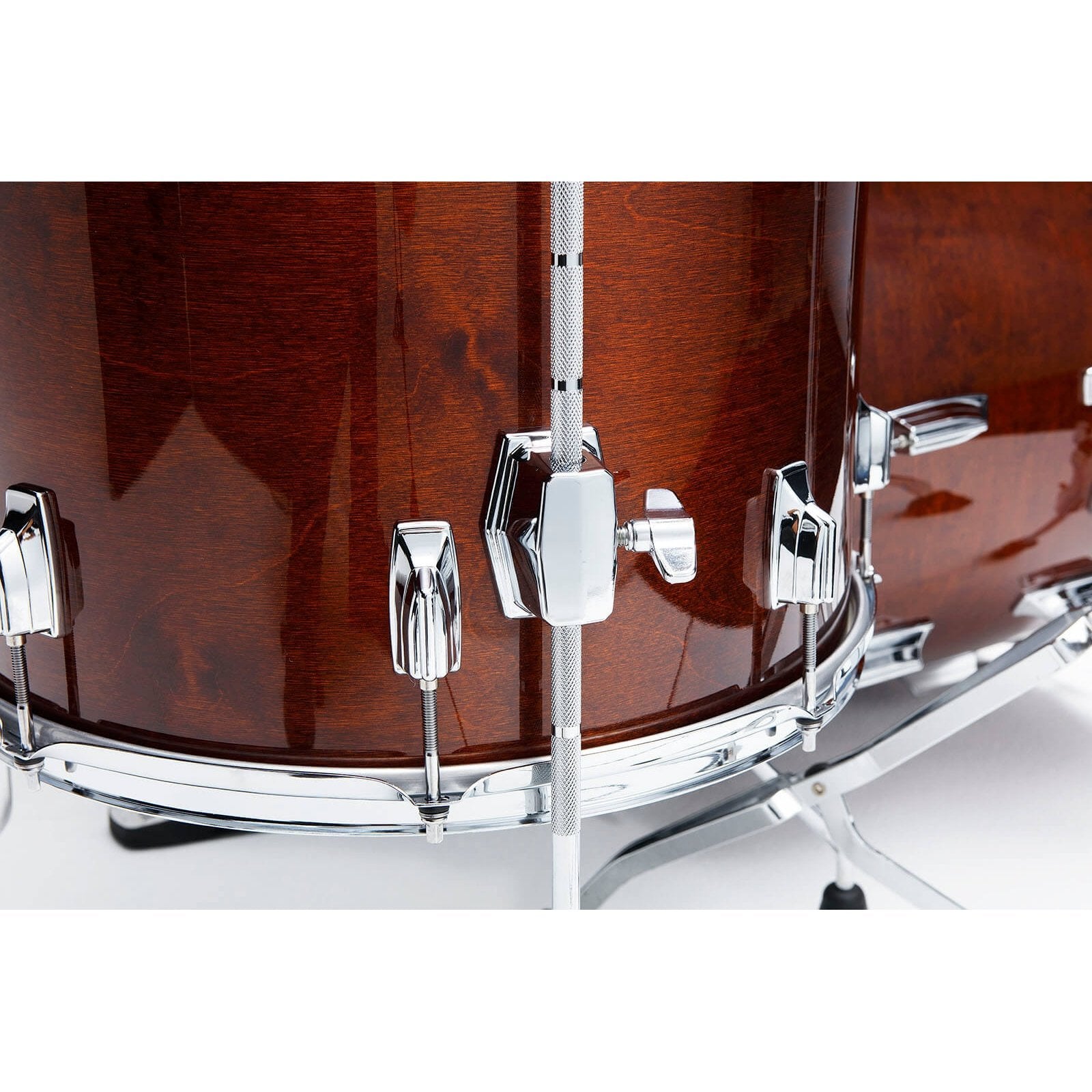 The shell kit configuration is mostly original sizes, but with a modern twist – 22x14BD, 10x8 (modern size twist) tom, 12x8 tom and 16x16FT. Available in 4 popular original colors: Aqua Marine, Cherry Wine, Super Mahogany, and Super Maple, all with matching bass drum hoops.