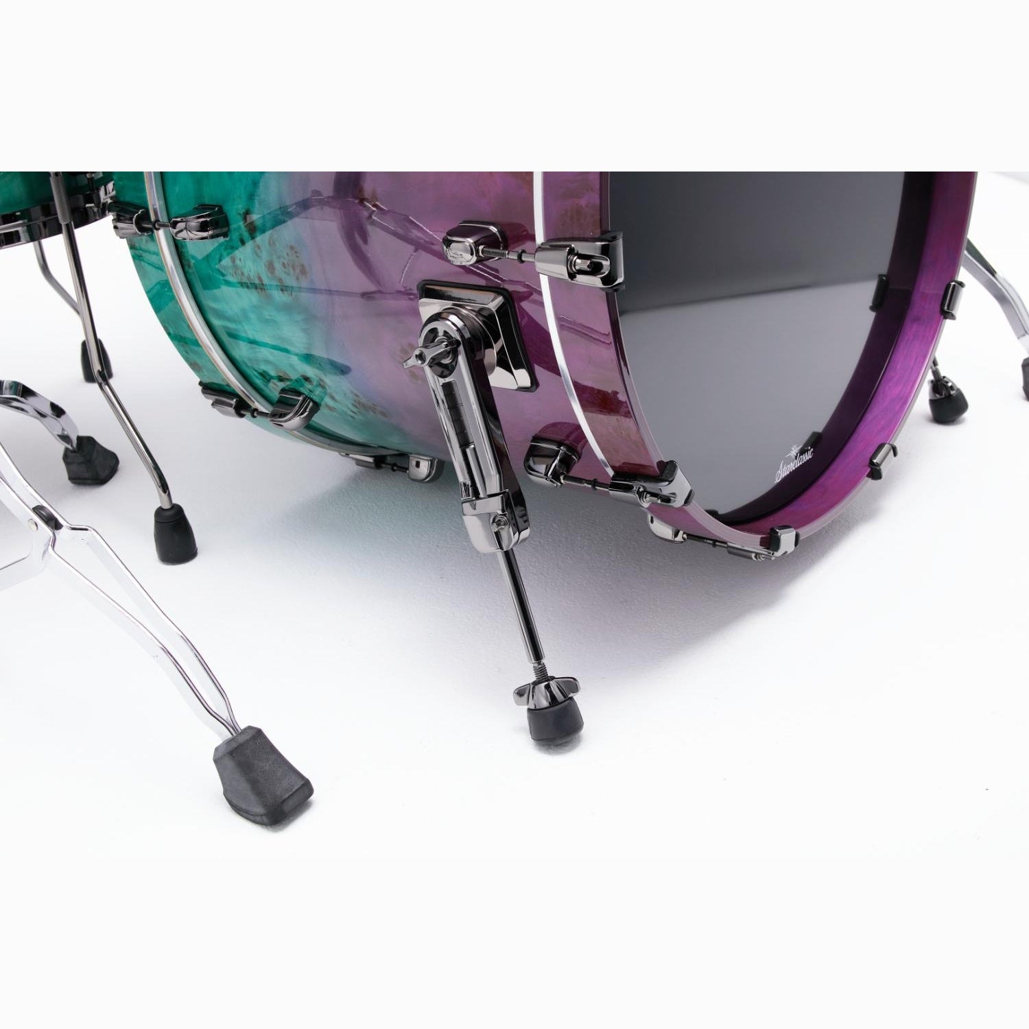 The Walnut/Birch shell for toms and floor toms is 6mm thick and constructed using 4-ply European Birch for the outer plies with 2-ply American Black Walnut interior plies. The bass drum shell specification is 8mm, 5-ply European Birch outer plies with 2-ply American Black Walnut interiors. The interior walnut shell ply includes a lacquer coating treatment, which adds an element of liveliness to the overall tone. Drum hardware includes die-cast hoops, Star-Cast Mounting System, and Quick-Lock brackets on the toms and floor toms. These features ensure precise tuning, crisp sonic attack, flexible adjustability, as well as overall rock-solid durability and stability.