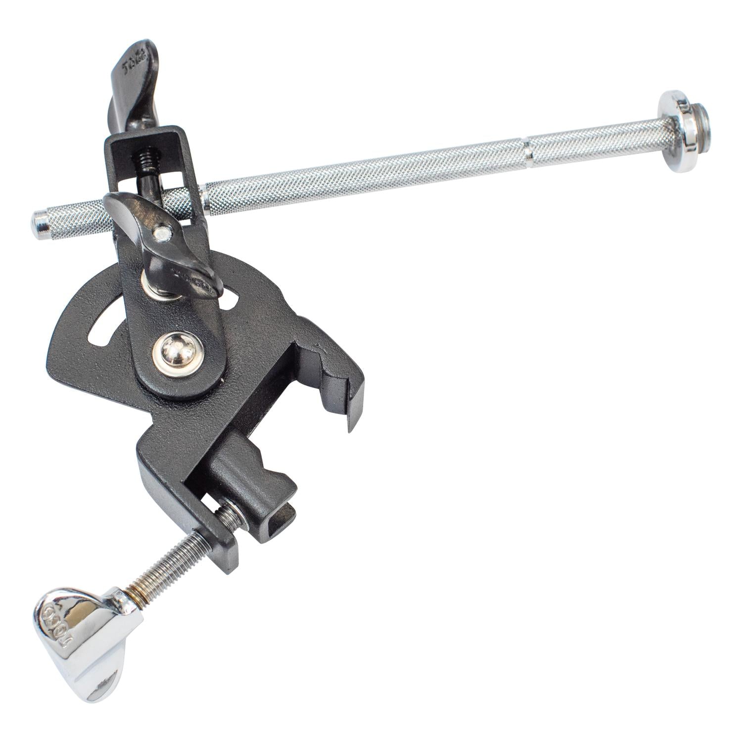 Designed for drum kit setups and percussion rigs, the Grabber with Mic Attachment features a standard percussion rod fitted with a threaded microphone connector. This allows users to choose their preferred microphone holder and easily attach it to the mount. The angle adjustability of the mount ensures precise positioning to meet the unique needs of each performance.