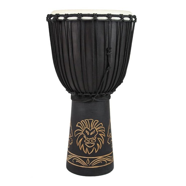 Origins Series Lion Djembe - Hand Carved from a single piece of environmentally friendly, plantation grown mahogany.