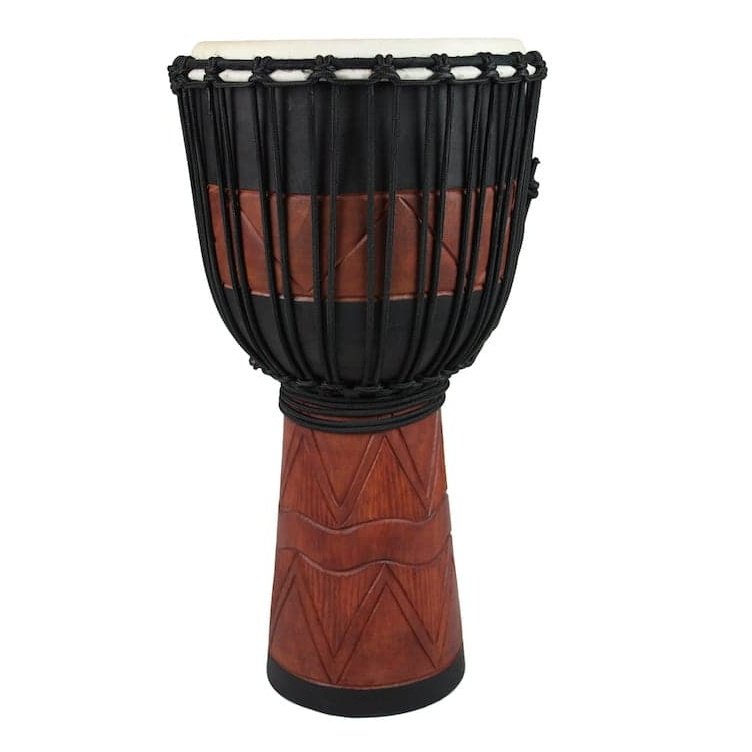 Street Series Small Diamond Djembe- Hand carved from one peice of, environmentally-friendly, plantation, grown Mahogany - Kiln dried with 20, coats of teak oil to protect & preserve, the wood.