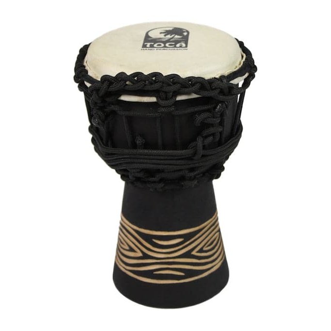Goatskin heads and the same, high quality HTB low-stretch rope now, used on all Toca djembes, SDMINI*
