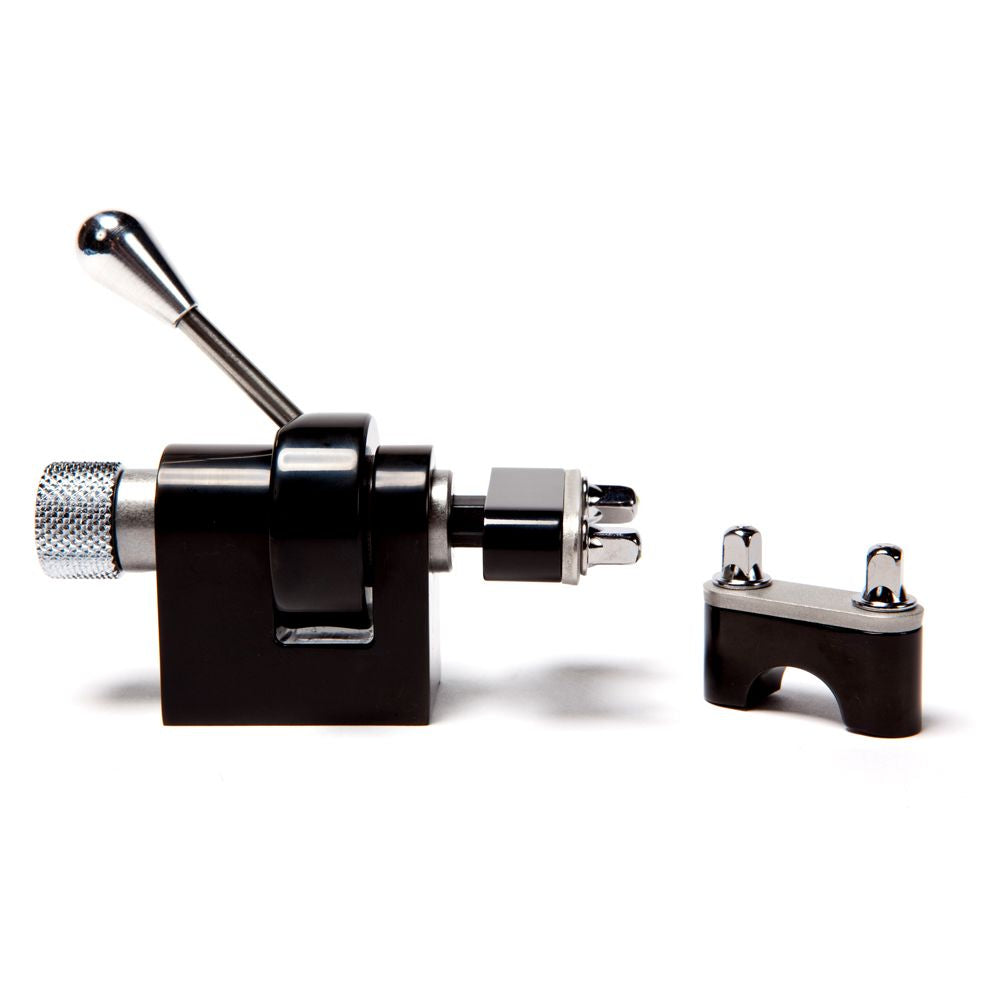 The Trick GS007 snare throw-off provides the smoothest, most accurate action available. Three finishes are available; black, chrome, and 24K gold! The Multi-Step version offers smooth and quiet operation with the added functionality of three snare tension positions; loose, medium, and tight (as well as "off", of course). A matching butt plate is included, as well as all necessary mounting bolts.