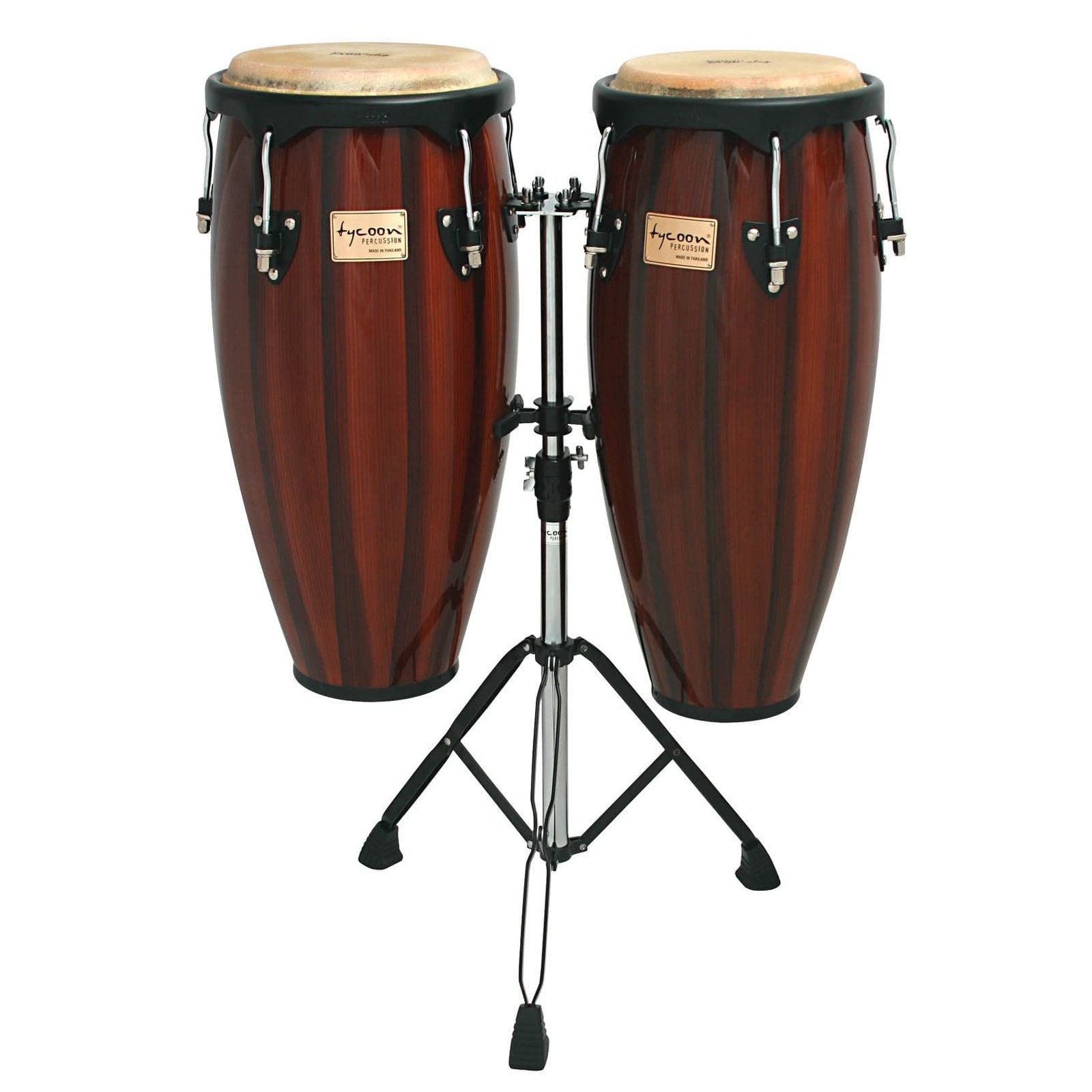 These congas provide exceptional durability and unmatched sound constructed of hand-selected aged Siam Oak Wood. They are 28 inch. tall featuring black powder coated Deluxe hoops reinforced side plates with 3/8 inch. diameter tuning lugs and backing plates. The heads are made of high-quality water buffalo skin and the hand-painted super high-gloss finish gives the congas a distinct shine. Ideal for the working percussionist. A tuning wrench and double stand are included.