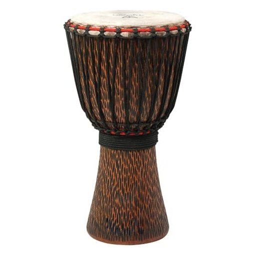 These djembes feature eco-friendly and tonally superior Mango Wood shells found in Northern Thailand. Each drum is outfitted with a distinct handcrafted finish. Deep, loud bass tones and high, sharp slap tones. 5mm extra strong non-stretch rope for easy and lasting tuning. Natural varnish finish.