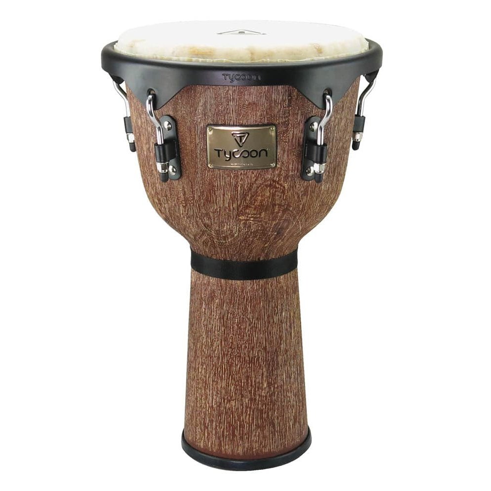 Constructed of hand-selected aged Siam Oakm providing exceptional durability and unmatched sound. Traditional bowl shape maximizes the authentic African djembe sound. Supremo Select Series djembes feature unique Tycoon original finishes.