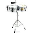 These timbales offer exceptional value and authentic sound for the intermediate player. The 14 inch. and 15 inch. diameter, 6-1/2 inch. deep brushed chrome plated shells are made from stainless steel and can be easily tuned with the included tuning wrench. Heavy-duty, fully height-adjustable, tilting timbale stand, cowbell mounting bracket with Tycoon Percussion TW-60 cowbell, pair of timbale sticks, and tuning wrench are all included.