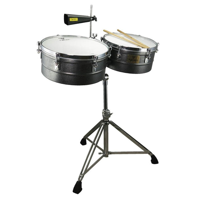 Superior quality and authenticity in sound designed for the professional or advanced player. Includes heavy duty, fully height-adjustable, tilting timbale stand, cowbell pair of timbale sticks, and tuning wrench. An excellent addition to any musician's set up.