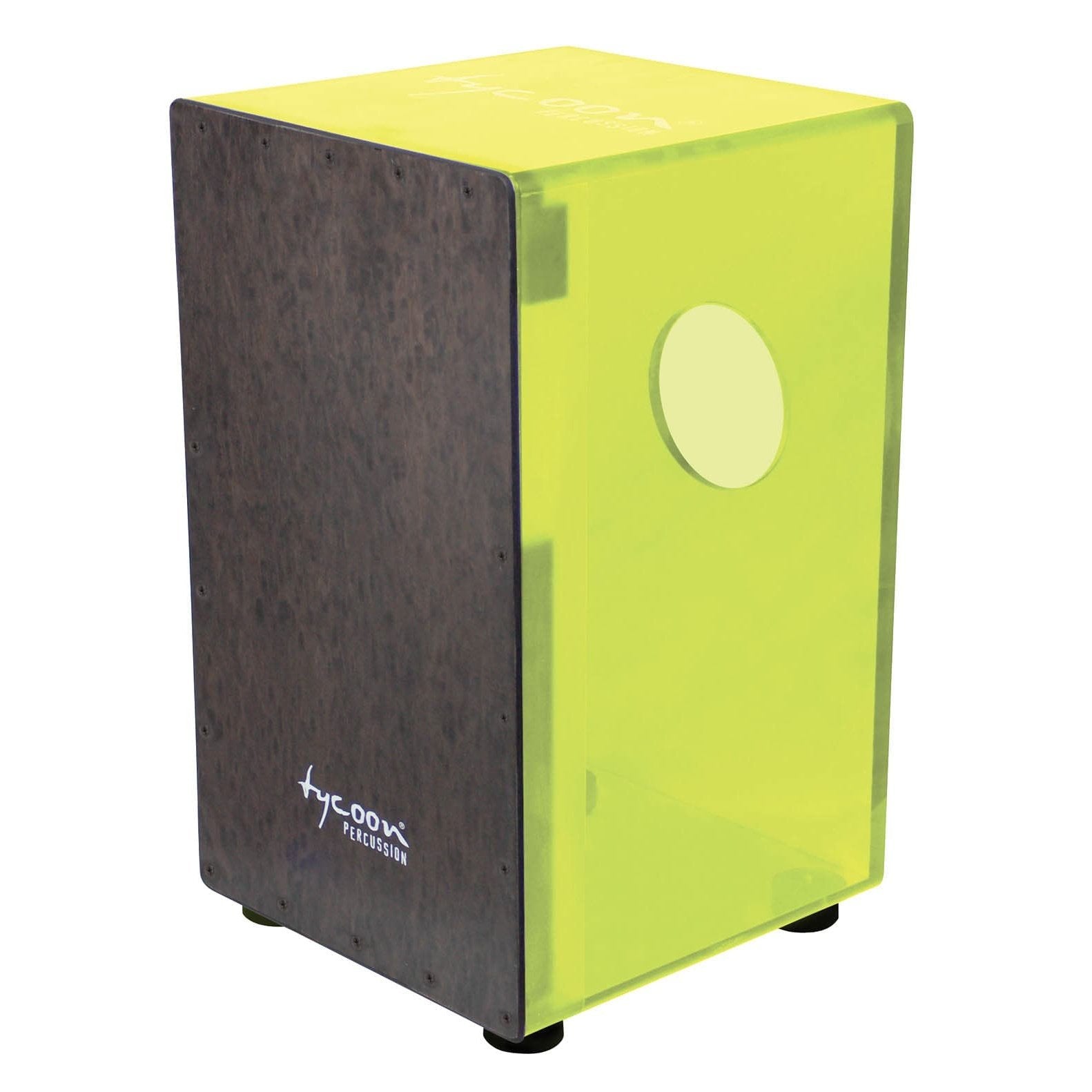 Tycoon 29 Series Neon Green Acrylic Cajon w/Black Makah Burl Front