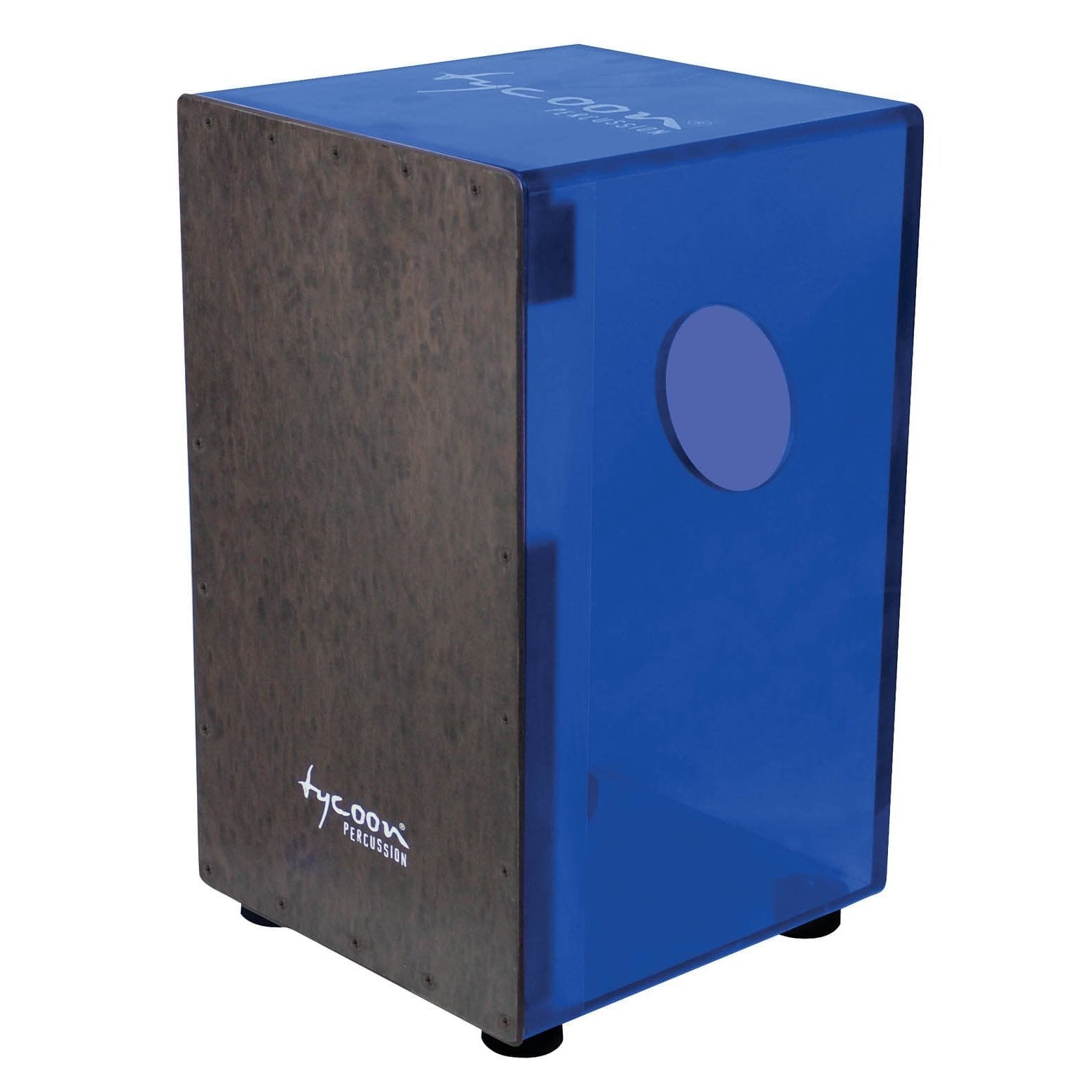 Tycoon 29 Series Royal Blue Acrylic Cajon w/Black Makah Burl Front