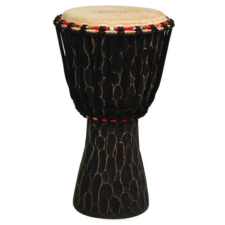 This djembe is 24 inch. tall with a 10 inch. diameter hand-picked quality goat skin head. Handcrafted from a single piece of sun-dried Mango wood, it features a distinct natural varnish hand-carved finish. The 5mm extra strong non-stretch rope provided easy and lasting tuning. The drum offers deep, loud bass tones and high, sharp slap tones.