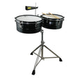Designed in collaboration with master timbalero Ralph Irizarry, these timbales offer superior quality and authenticity in sound. These drums for the professional or advanced player feature a unique black satin finish and Ralph's signature nameplate. The 14" and 15" diameter, 6-1/2″ deep shells are made from stainless steel. Includes heavy duty, fully height-adjustable, tilting timbale stand, cowbell mounting bracket, Tycoon TW-60 cowbell, pair of timbale sticks, and tuning wrench.