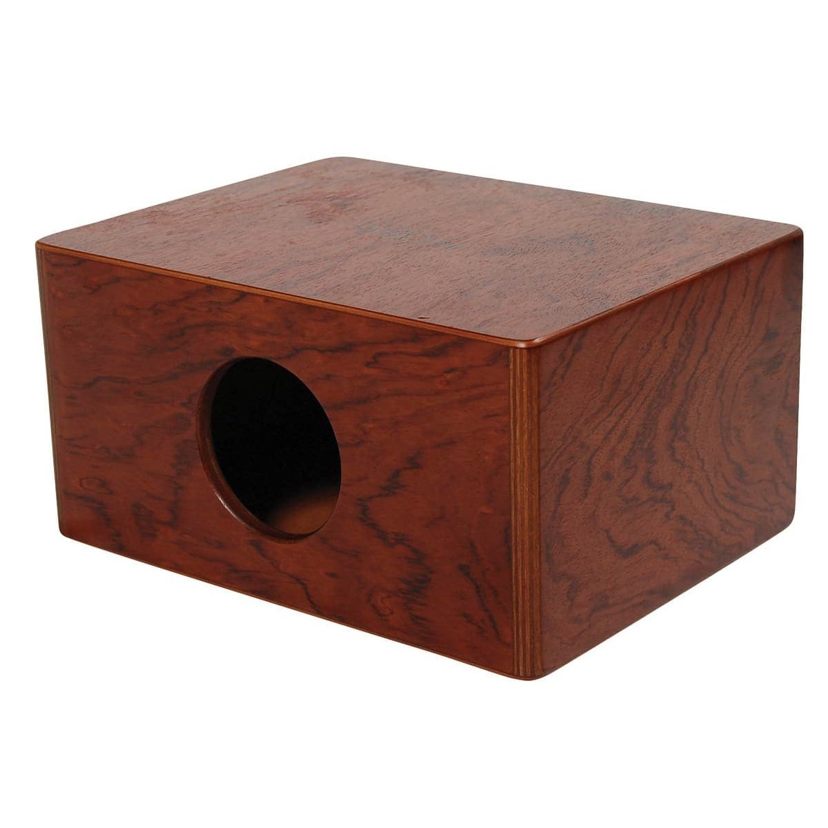 This is a portable version of the box cajon. It's made of Bubinga wood and measures 5.5 inch. x 8.5 inch. x 11 inch..