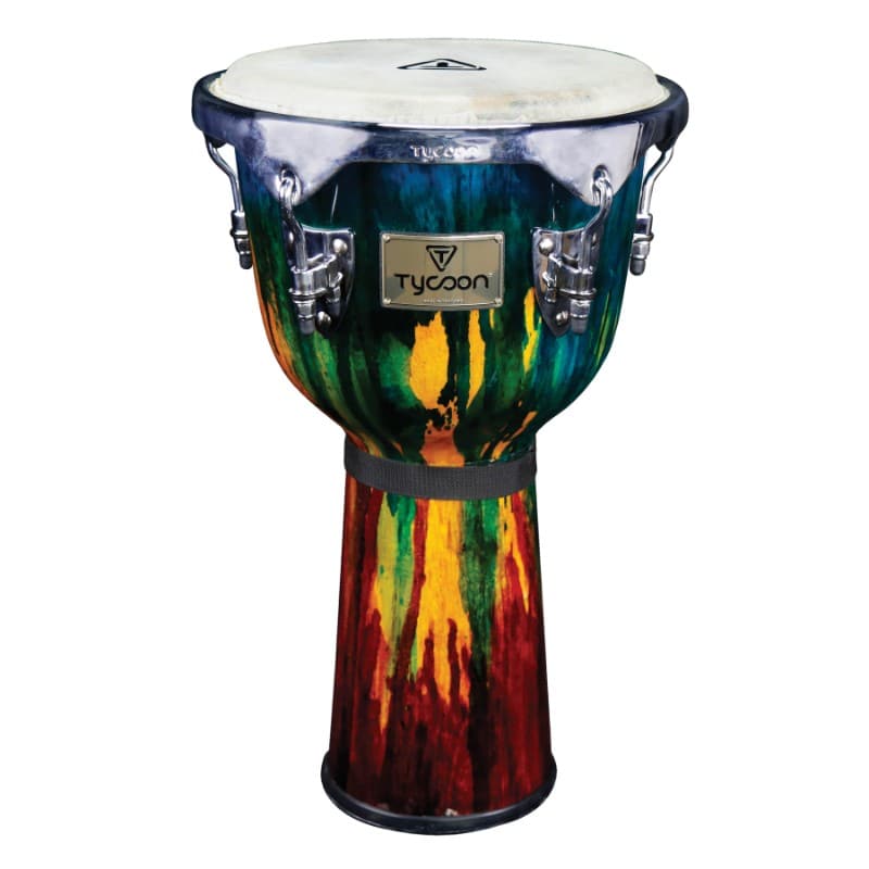 The latest addition to Tycoon's famed Master Series is the new and exclusive Palette finish. The djembe perfectly showcases Tycoon's industry-leading finishing capabilities, marrying the intricacies of hand-applied painted color by skilled artisans with our state-of-the-art high gloss polishing, resulting in a completely original and stunning masterpiece. Chrome hardware accentuates the beauty of its cascading color scheme.
