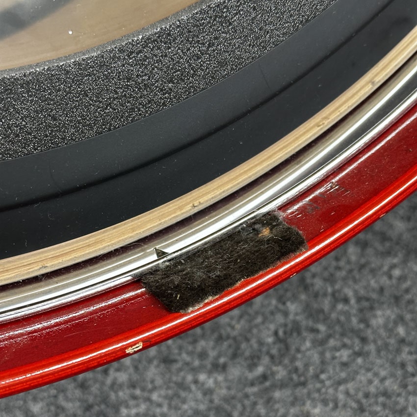 Good condition for its age. All mounting hardware present and functional. No snare stand. The shells and hardware are clean. A few small marks on the rack toms where they might have rubbed against a snare drum or floor tom but no major dings in the shells. All "lugless" tuning mechanisms are clean and functional. Sizes for this kit are 12x10, 13x11, 16x14, 22x14, 14x6.5.