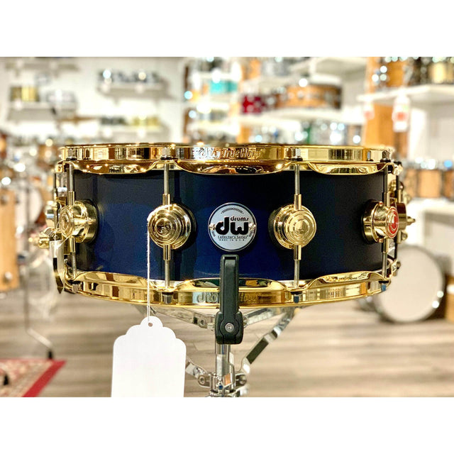 Used DW Collectors Birch Snare Drum 14x5.5 Hard Satin Regal Blue over Moabi w/Gold Hardware