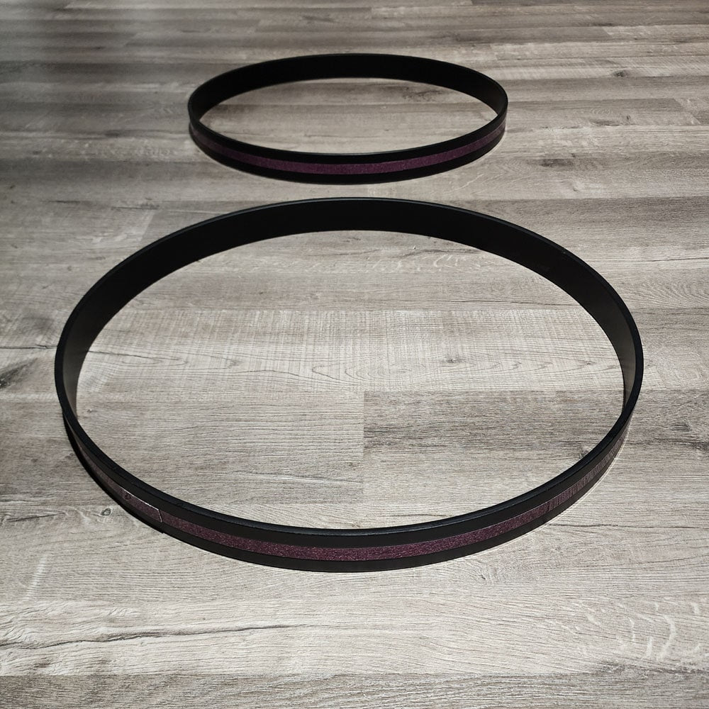 Excellent condition! 10x8, 13x9, 16x16, 22x16. One previous owner. This set belonged to one of our very good regular customers. He gigged it out twice and otherwise had them stored in Ahead Armor cases. Comes with an extra set of black Gretsch bass drum hoops with the Purple Glass inlay. Mounting hardware sold separately.