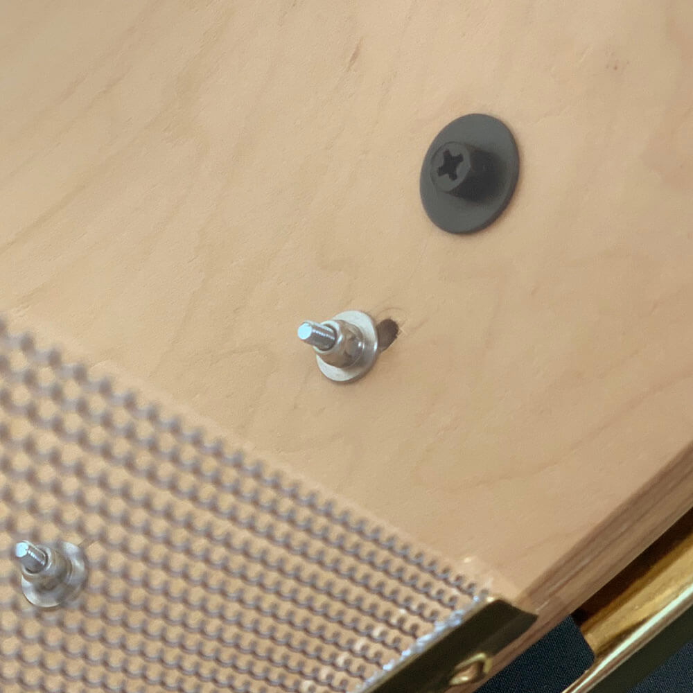 Good condition. The shell shows scuffs and scratches but still looks great from a few feet away. There is one tiny ding on the bearing edge, but it does not affect the sound at all. The top hoop has some light scrapes on one section. Fitted with a Ludwig P88AC throwoff and INDe Universal butt plate. There is one small extra hole under the butt plate, only visible from inside the shell. The Keystone badge appears to be a reproduction but looks authentic! All hardware is brass-plated, and the heads appear to be new! Most importantly, this thing sounds fantastic. Fat and responsive with a nice wide tuning range.