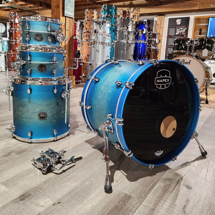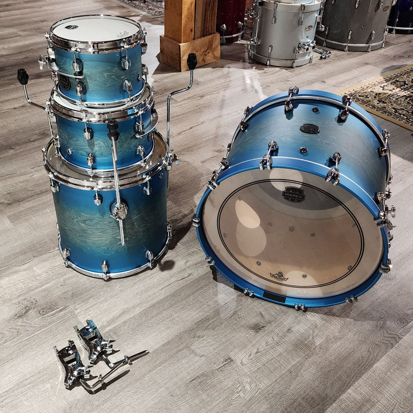 Excellent condition. Maple/walnut hybrid shell. Only a few stick marks on batter heads, and a port installed on the kick drum reso head. Otherwise these drums are like new. Sizes are 22x16, 10x7, 12x8, 16x16. Includes tom arm clamps (x2)