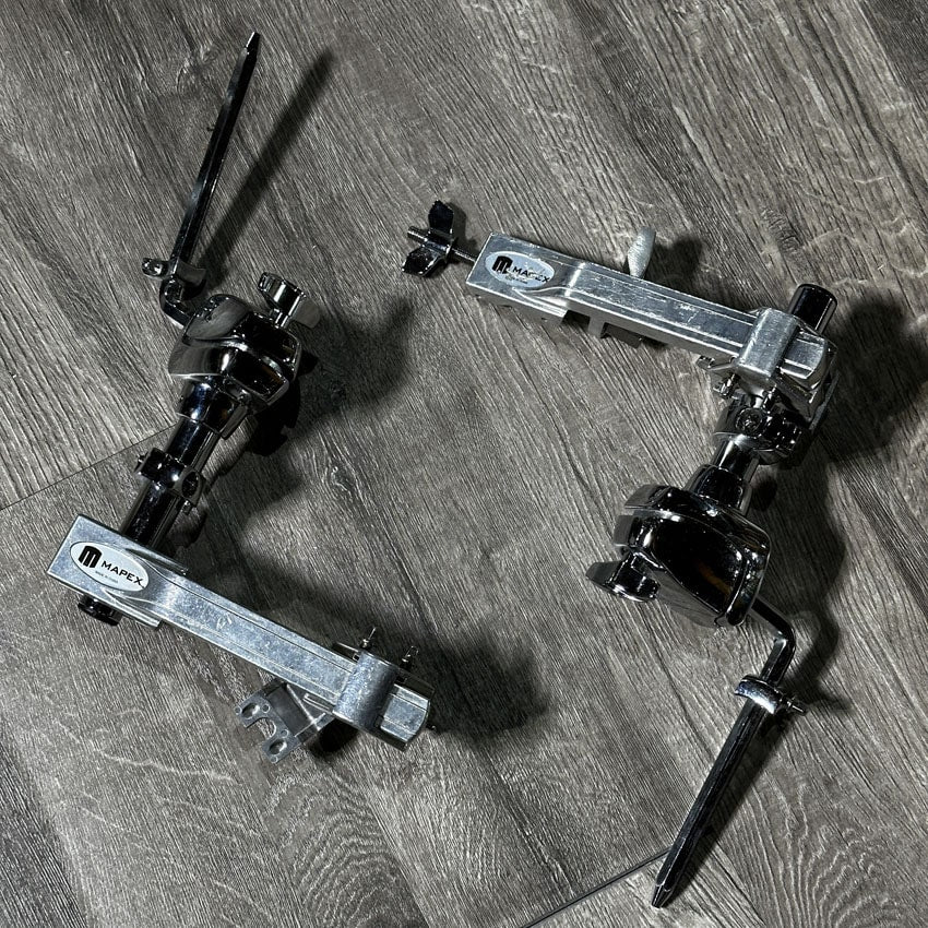 Good condition. 10x7, 12x8, 14x12, 16x14, 22x20. The hardware has a lot of fingerprints/dust and couild use a cleaning. The shells are in good shape with only a few cosmetic flaws. The 14 floor tom has a crack in the lacquer finish but not the shell itself. Comes with clamp on Mapex tom holders. All parts present and functional.