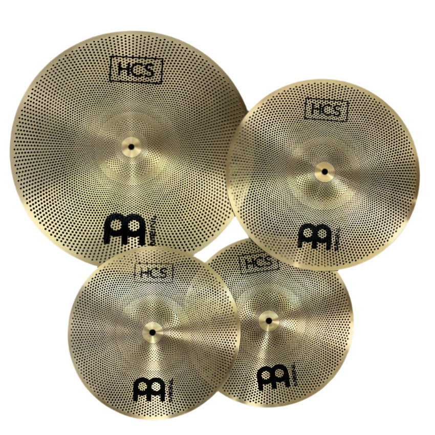 Made for low volume playing, you can practice anytime without disturbing your family or neighbors. These practice cymbals are made from brass alloy and have a unique hole pattern engineered by MEINL for an authentic sound and feel under the stick. Pack includes a 20" ride, 16" crash, and 14" hi hat pair.
