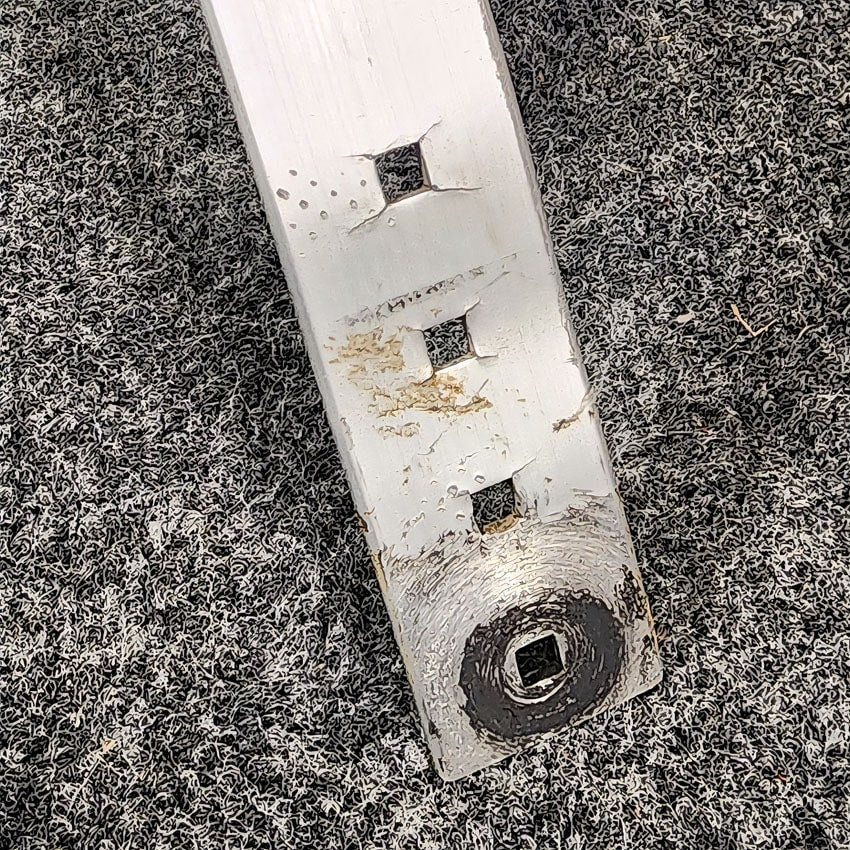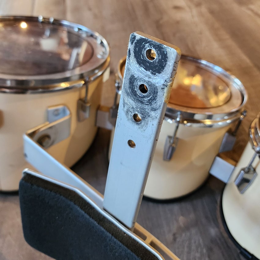 Fair condition. The shells are in good shape. The carrier is functional but is cracked near where the two parts are connected. Remo Crimplock Pinstripe heads are in good condition. This would be a great practice set for a beginner marching percussionist!