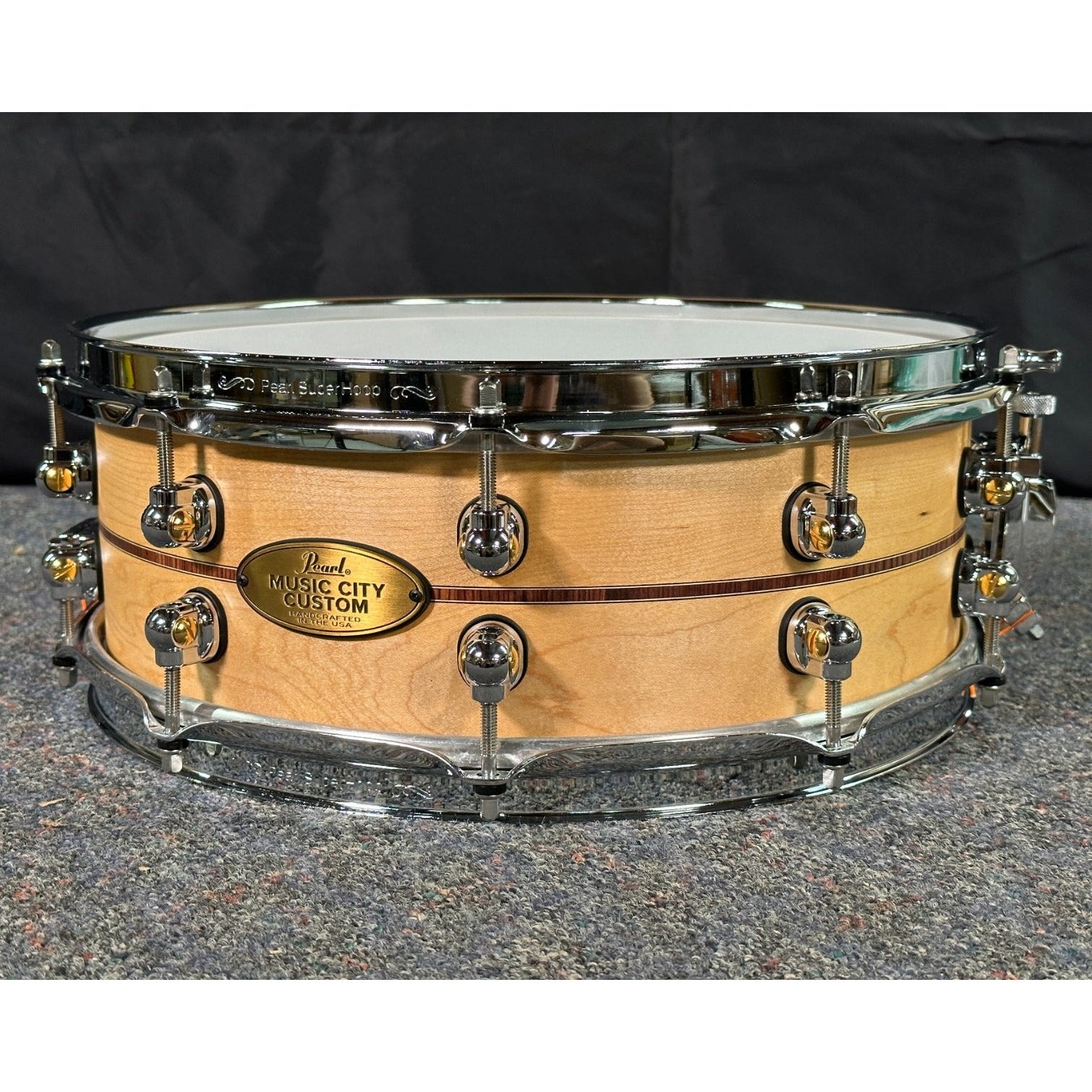 Used Pearl Music City Custom Solid Maple Snare Drum 14x5 Natural w/Kingwood Inlay