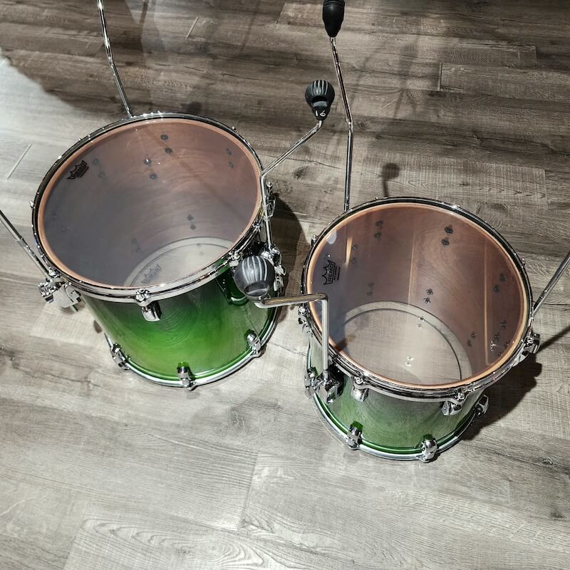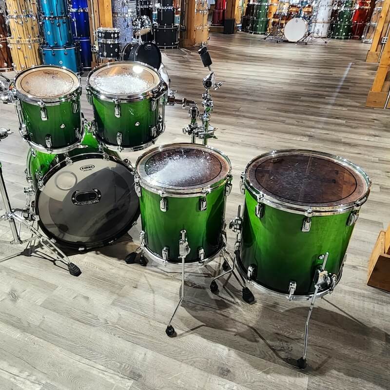 Very good condition. These drums are CLEAN! 10x10, 12x10, 14x14, 16x16, 22x18. Comes with two heavy duty tom/cymbal boom stands.