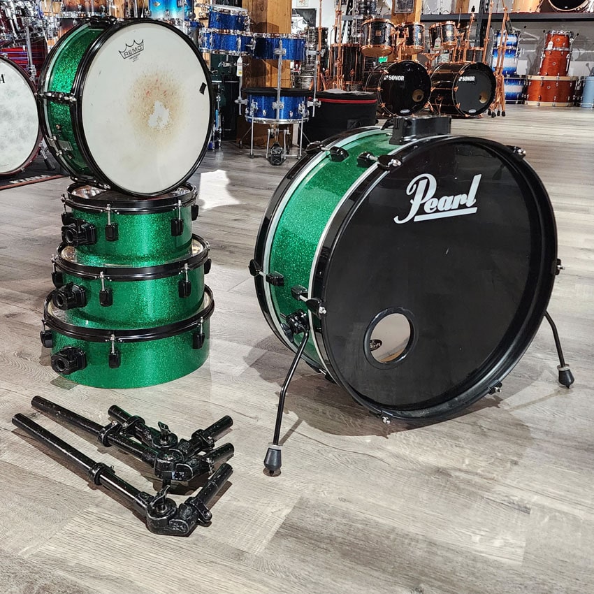 Used Pearl Rhythm Traveler 5pc Drum Set Green Sparkle - Good Skip to content